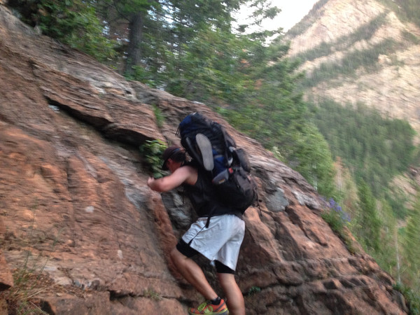 From the top of Mission Falls the trail turns to the left and starts to get thick and steep. We could tell most people hike to the falls as just a day hike because the trail from here on was less traveled. Here is Anthony starting the climb.