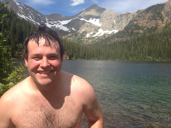 So, we worked our way back around Lucifer Lake and setup camp. Since we still had the afternoon ahead it was time to test the cold alpine water. This is me looking happy but I can tell you, I. Was. Freezing.